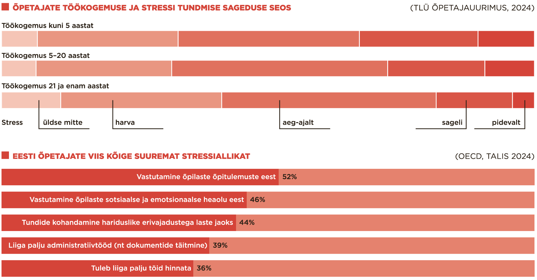 Sõltuvalt metoodikast ütleb 26% (TLÜ õpetajauurimus, 2024) kuni 67% (TALIS, 2024) Eesti õpetajatest, et tunneb sageli või üsna palju stressi. Seda on liiga palju iga metoodikaga saaduna. Teame, et õpetajate stress mõjutab õpilaste arengut õpetamismetoodikate valiku kaudu. Stressis õpetajad ei pööra lastele piisavalt individuaalset tähelepanu ning keskenduvad vähem lapse õppimise protsessile. Suuremat stressi tundvad õpetajad soovivad suurema tõenäosusega töölt lahkuda. Seetõttu puudutab õpetajate stress mitte ainult nende enda heaolu, vaid ka lapsi, vanemaid ning kooli ja koolijuhti.