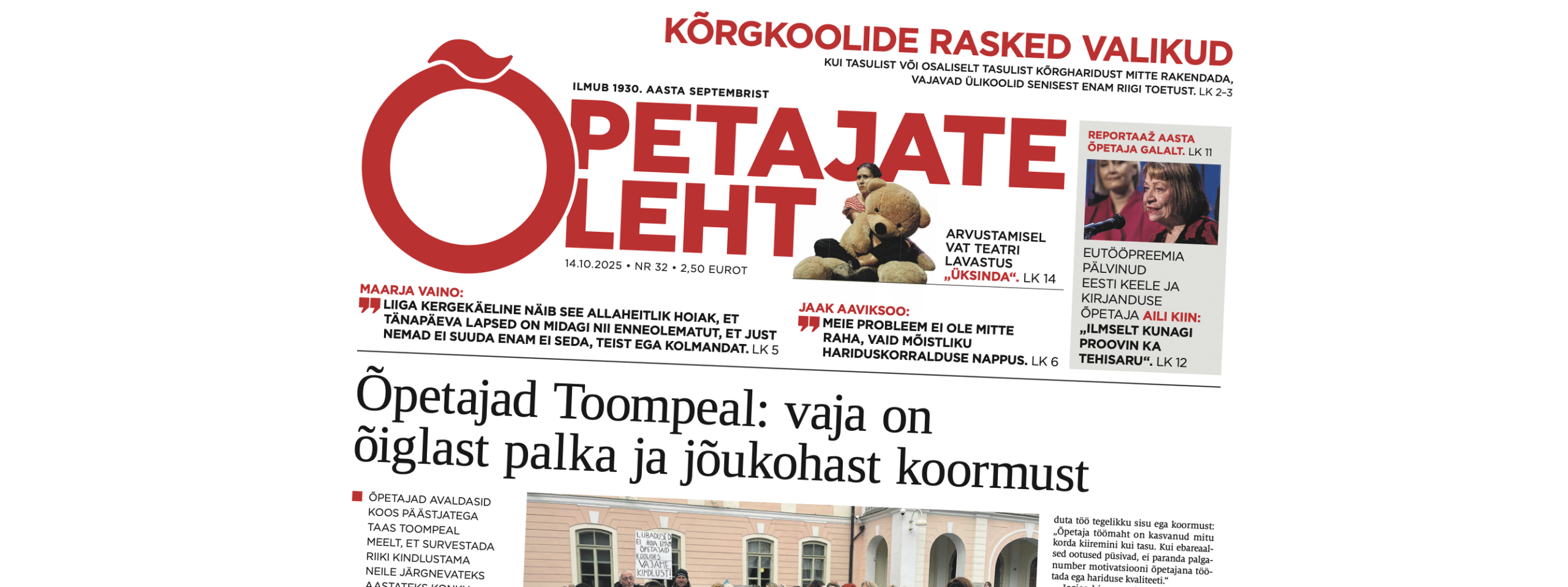 Õpetajate Lehel on õigus avaldada teie kirjutatud kommentaar paberväljaandes. Kommentaari pikkus ei tohi ületada 3000 tähemärki. Õpetajate Lehe kodulehe kommentaarid on modereeritavad ja avaldatakse pärast toimetamist hiljemalt kommentaari saatmisele järgneva tööpäeva hommikuks. Lehel on õigus jätta saadetud kommentaar kodulehel avaldamata. Iga kommentaari edastaja arvuti IP-aadress, sessiooni identifikaator ja kommenteerimise aeg salvestatakse andmebaasis. Õpetajate Leht ei vastuta kommentaaride sisu eest!
