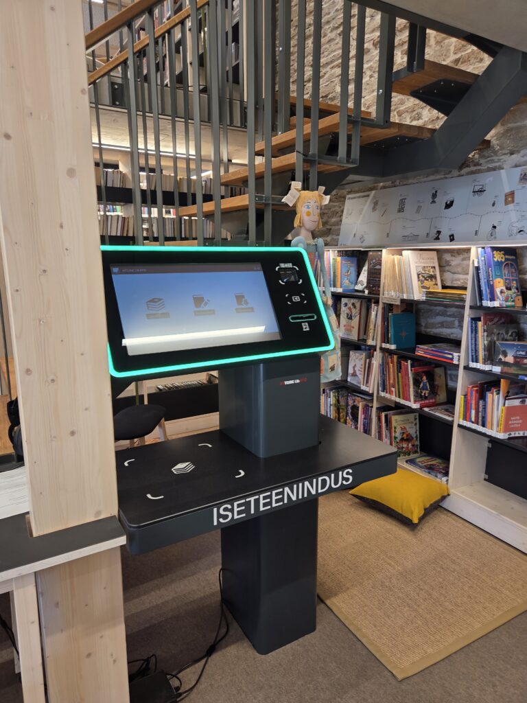 Raamatukogus on RFID-iseteenindus. Kellele meeldib kiiresti toimetada, tuvastab end ID-kaardiga, asetab kiibiga raamatu automaadile ja laenutus on hetkega vormistatud. Samas on kohal ka inimesed: kaks töötajat abistavad, annavad nõu ja laenutavad ka täiesti tavapärasel moel.