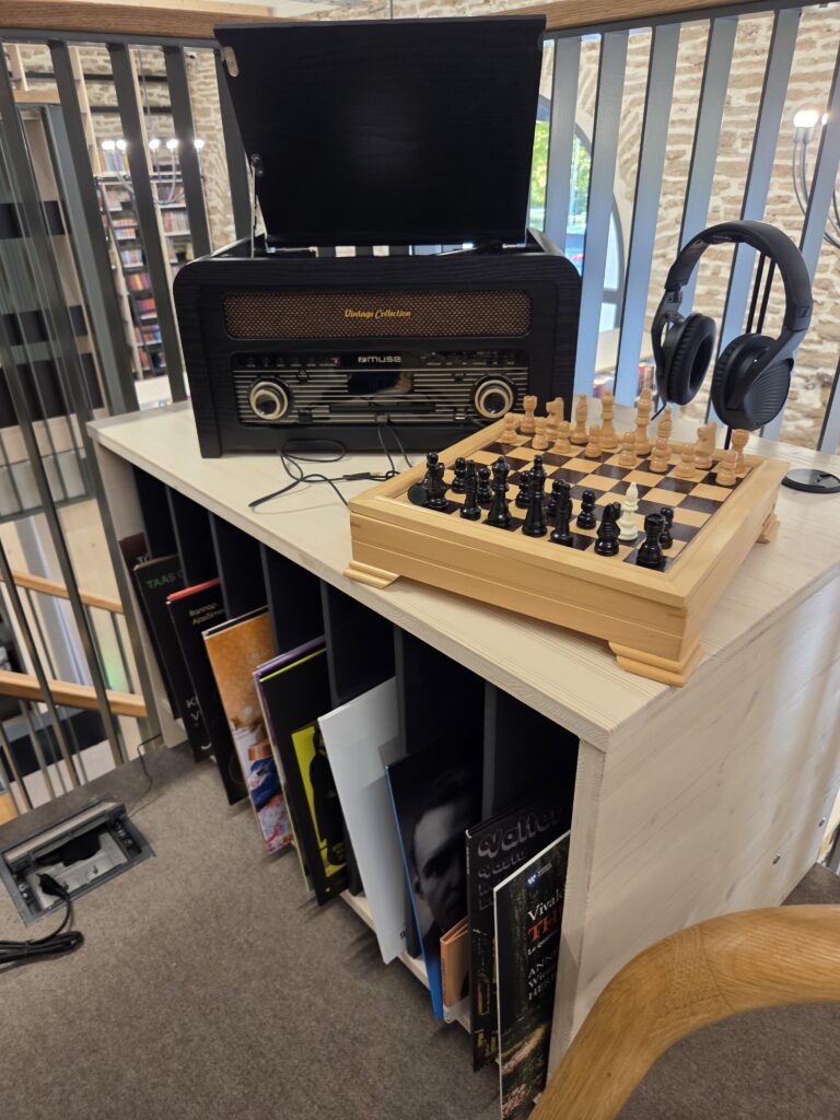 Kuna kogukond soovis, et raamatukogus oleks võimalik ka muusikat kuulata, oleme loonud muusika kuulamise kohad ning soetanud vinüüle. Kasvatame muusikakogu jõudumööda.