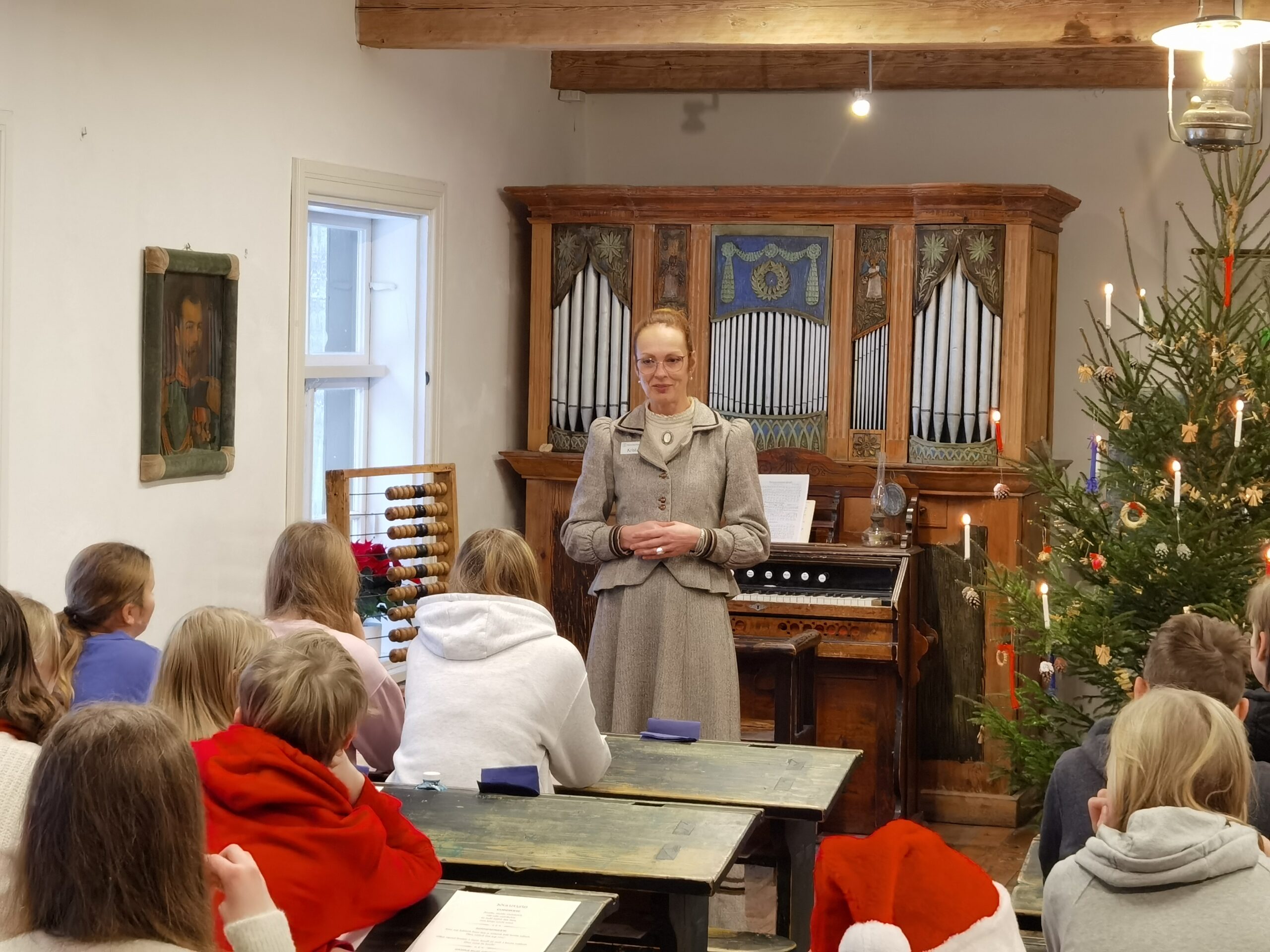 Koolitunnis saab ajastuhõngulises klassitoas tutvuda Lutsu-aegse koolieluga ning kuulata jõulujuttu väikesest Oskarist. Tunnis loetakse ja rehkendatakse ning lauldakse harmooniumi saatel ümber kuusepuu. Eelkooliealised lapsed saavad mälestuseks oma värvitud jõulupildi, suuremad aga tunnistuse, mis on täidetud sule ja tindiga – nagu kooliajal vanasti.