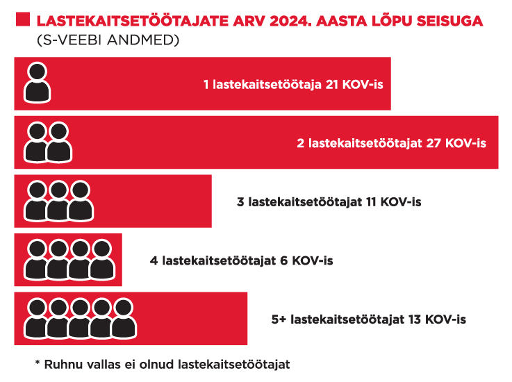 Tema sõnul ei peeta Eestis ametlikku statistikat selle kohta, kui suur on KOV-i lastekaitsetöötajate tööjõuvoolavus. „Mitteametlikel andmetel saab aga öelda, et viimase kolme aasta jooksul ehk aastatel 2023–2025 on vahetunud ca pool KOV-i lastekaitsetöötajatest. Tuleb arvestada, et see hõlmab ka liikumist süsteemi sees ega tähenda, et nii palju lastekaitsetöötajaid oma ametis enam ei tööta. Tegemist ei ole ametlike numbritega,“ rõhutab ta ja lisab, et üldise suundumusena saab välja tuua, et kuigi lastekaitsetöötajate koormus on kasvanud ka suuremates omavalitsustes, on probleem suurem väiksemates, kus tööl vaid üks või kaks spetsialisti: „Nendes KOV-ides on keerulisem leida lastekaitsetöötajale asendajat, mis tähendab, et iga lahkumine või haigestumine mõjutab süsteemi oluliselt. Ka tähendab see, et lastekaitsetöötaja peab olema ekspert kõigis lastekaitsetööga seotud teemades, mida on palju.“