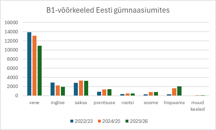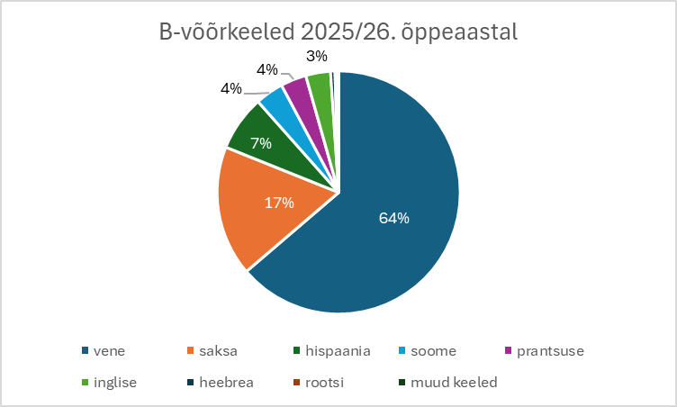- 2025/2026. õppeaasta on järjekorras juba kolmas, mil õpilased saavad koolis teise ehk B-võõrkeelega alustades valida kahe või enama võõrkeele vahel. Hakkavad vormuma 2023. aastal läbi viidud B-võõrkeelte reformi tulemused ning on näha, et õpilaste keelevalikud peegeldavad üha enam nende huvi ja ühiskonna laiemaid vajadusi.