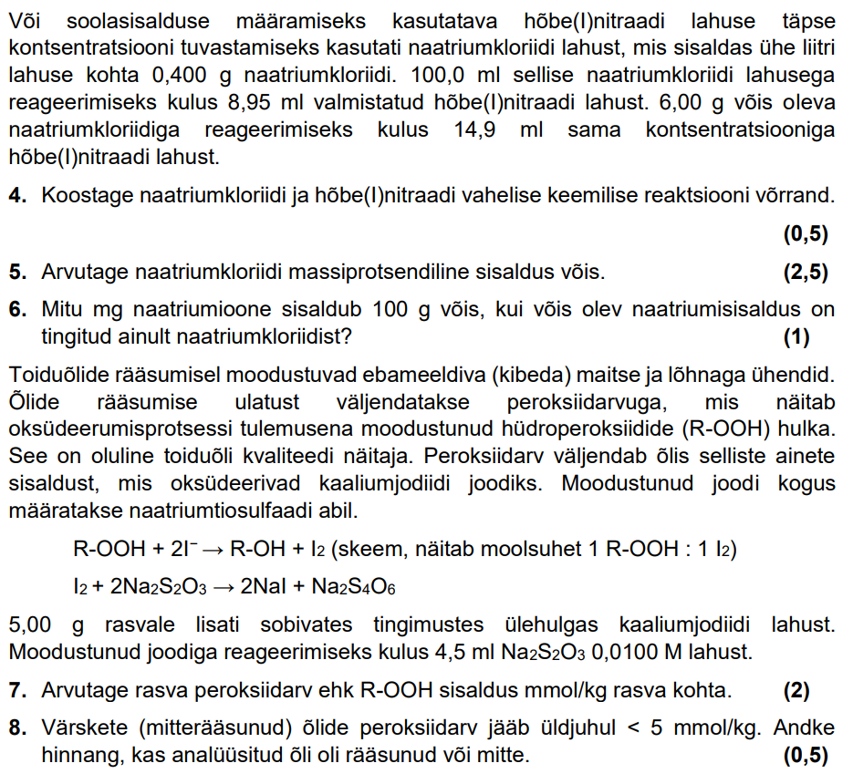 Näiteid koolivooru ülesannetest füüsikas ja keemias