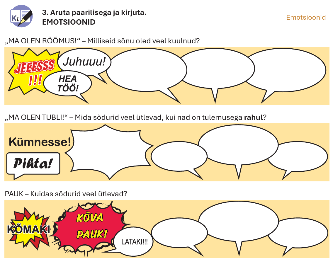 Sama läbimõeldud on tööraamatu mitmekesine ülesandepagas, kus koostajad on lasknud loovusel lennata, kuid hoidnud samal ajal selget metoodilist joont ja loogilist tegevusjärjekorda. Tööraamatust leiab kirjalikke, suulisi, kuulamis-, visuaalseid ja käelisi õpitegevusi, sh joonistamist.