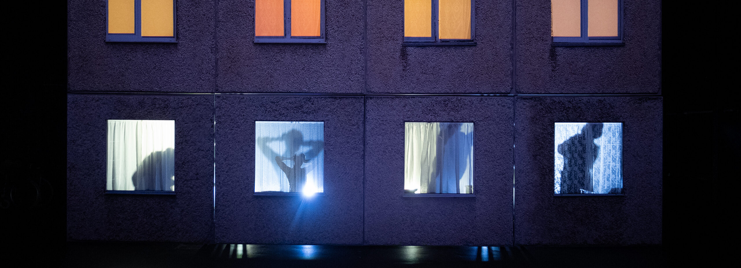 Mirtel Pohla, Ester Kuntu, Tanel Saar ja Meelis Põdersoo jutustavad igaüks publikule kaks lugu, taustaks sümboolne paneelelamu – pool sajandit tagasi ehitatud hoone, mille loomisel pole ilmselgelt mõeldud puuetega inimestele ega vananevale elanikkonnale. Ja isegi kui kõrgematesse neist oli ehitatud lift, tuli enne selleni jõuda. Muuseas, ühel päeval jäin silmitsema uhiuusi ja ilusaid korruselamuid, kus klaasist välisustest paistis lift … kuid kõnniteelt majani pääsemiseks olid vaid käetugedeta trepiastmed, mõne maja ees kaks, mõnel kolm, mõnel veelgi rohkem.