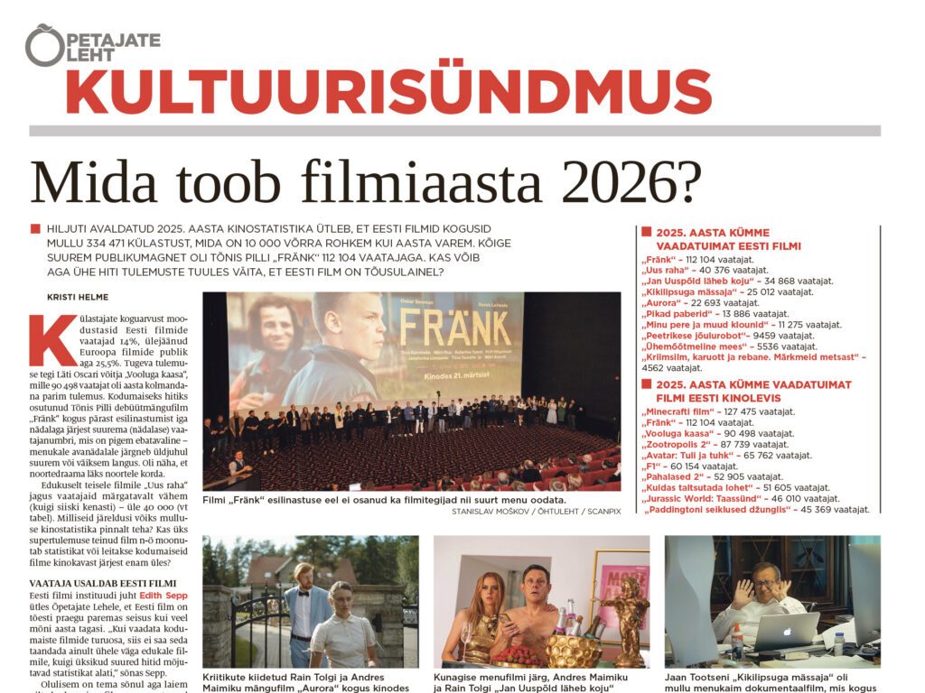 Hiljuti avaldatud 2025. aasta kinostatistika ütleb, et Eesti filmid kogusid mullu 334 471 külastust, mida on 10 000 võrra rohkem kui…