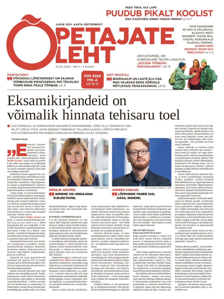 Kas põhikooli ja gümnaasiumi kirjandite parandamisel võiks olla tehisarust abi – nii, et lõplik otsus jääks endiselt inimesele?…