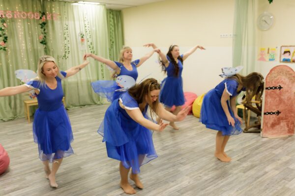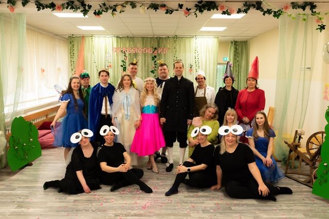 Jaanuari lõpus teen lasteaias üleskutse ja kogunevad igast rühmast lapsevanemad, kes soovivad teha lastele üllatust teha. Näitegrupis on kokkulepe, etkõik toimub laste eest salaja, emad-isad kogunevad teisipäeva õhtuti lasteaia suurde saali ja võlumaailm saab alguse. See kõik sünnib soovist teha midagi head, igal nädalal leitakse aega keskenduda sellele, et märtsi lõpuks valmiks üks vahva etendus. Kõik annavad oma panuse loominguliselt: Heiki ema õpetab tantsud selgeks haldjatele ja lõbusatele kärbestele, õpetaja Piret loob lõputantsu, muusikaõpetaja Siim ja Janno aitavad heliga (pillid ja Youtube), mina valin loo või muinasjutu, kirjutan stsenaariumi, aitan kostüümidega ja hoian kõik ühes paadis. Muidugi on igal sammul abiks palju taustajõudu. Mõned õpetajad aitavad kostüüme õmmelda, lavakujundusse detaile kleepida või maalida, juhtkond vastutab kingituste eest näitlejatele ning aitab katta näitlejatele üllatuseks kohvikulaua hea ja paremaga.