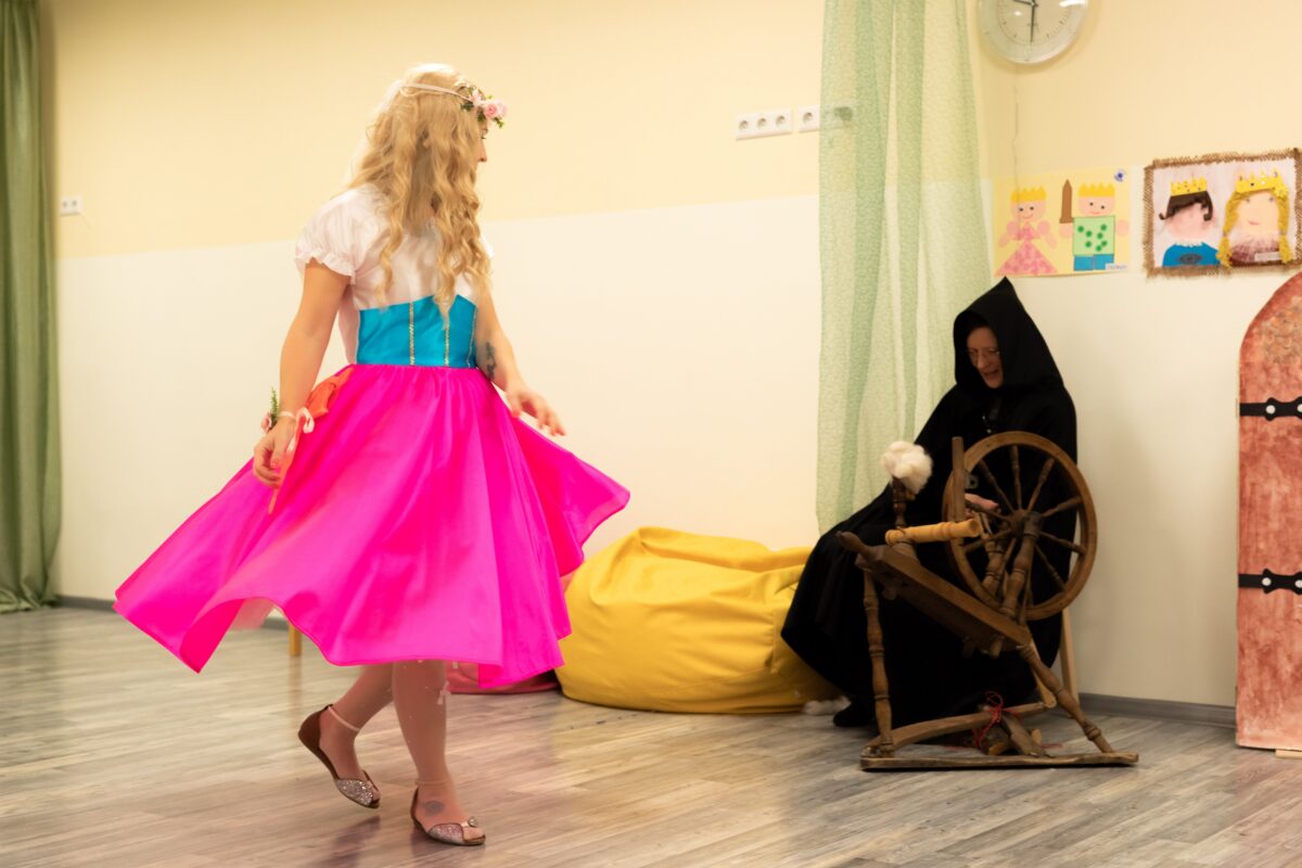Ei ole kerge pea kaks kuud järjest kindlal päeval ja kellaajal kokku saada – küll on lapsed haiged, küll on vaja kedagi kuhugi sõidutada või on linnas ummikud jne jne. Aga vanemad tulevad alati, tekst peas ja tiivad seljas. Me pole kunagi stsenaariumis kinni, vanemate vahvad ettepanekud või ägedad naljad lõimime kindlasti etendusse. Oleme eri näitegruppidega toonud lavale „Kolm põrsakest“, „Pöial-Liisi“, „Jussikese seitse sõpra“, „Kaksteist kuud“, „Lumivalgekese“ ja nüüd siis „Okasroosikese“.