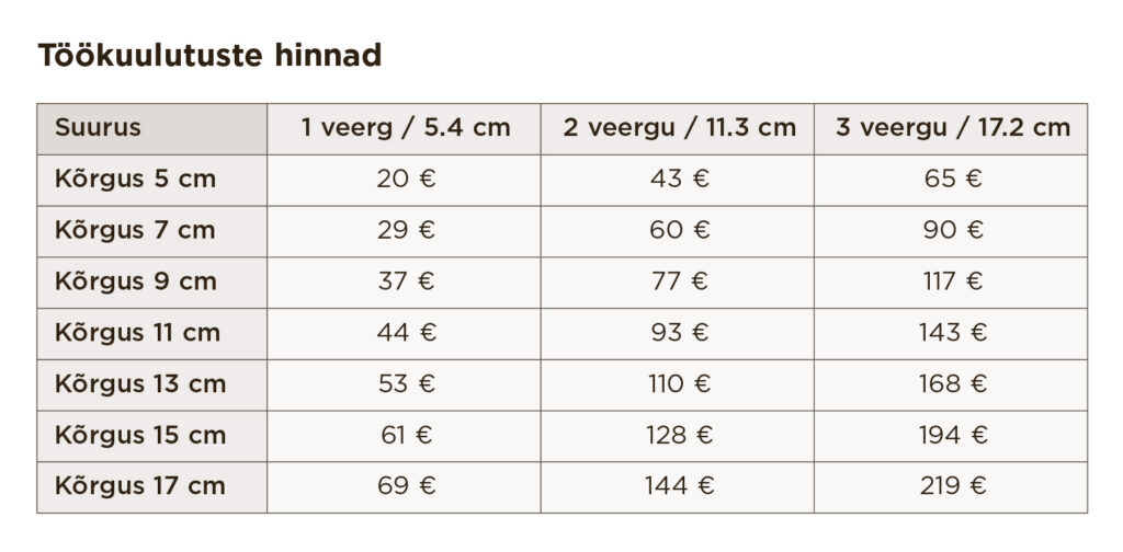 - 1/24 lk 450 tähemärki koos tühikutega 25 eurot + käibemaks