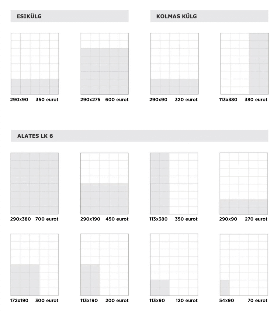 Reklaamide kujundamisel palume arvestada, et avaldatava reklaami laius tuleb valida lehe veerulaiuste hulgast ning reklaami kõrgus ei tohi olla üle 380 mm.